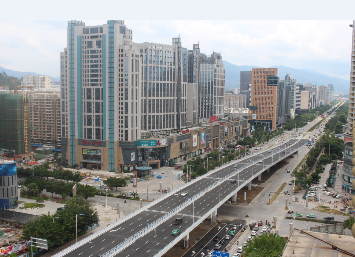 龍巖大道高架橋項目為省、市重點(diǎn)建設(shè)項目,是龍巖中心城市連接南北、溝通新老城區(qū)的重要樞紐,項目位于龍巖市南北交通中心軸和景觀軸線龍巖大道上,全長3395m,包含橋梁和地面道路兩大部分,其中橋梁工程總長2329m,橋?qū)?6m,包含一座190+150m獨(dú)塔斜拉索鋼箱梁主橋(主橋?qū)?6.3m),全線設(shè)計為雙向六車道,設(shè)計車速60km/h,在西陂路及人民路處各設(shè)置上下匝道,跨越雙洋路、羅龍東路、人民路、登高西路、西陂路城市主干道,項目總投資約24億元。