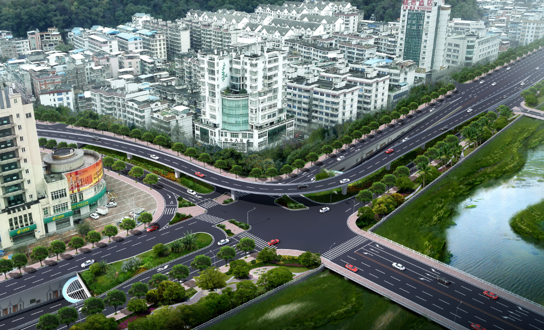 郵政交通節(jié)點項目起于蓮莊北路順康汽車檢測中心處,終于瑞德酒店門口,采取“主線下穿、左轉(zhuǎn)高架”方案,設(shè)下穿通道下穿南環(huán)西路與南環(huán)中路交叉口,全長700米,凈寬2×8.5米,其中暗埋段長度為120米,敞開段(U型槽)長275米;南環(huán)路往溪南南路方向設(shè)左轉(zhuǎn)匝道高架,橋長246米,兩側(cè)引道擋墻全長117米,項目總投資約1.4億元。