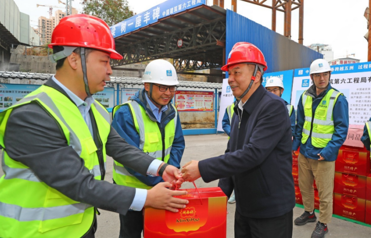1月7日上午8時,市領(lǐng)導(dǎo)許維澤、陳廈生、黃慶輝來到龍巖大橋項目現(xiàn)場,了解建設(shè)情況,慰問一線工人。許書記首先詳細了解項目建設(shè)進展情況,并對龍巖大橋主塔順利封頂表示祝賀。同時,許書記為一線工人送上2020年“兩節(jié)”送溫暖慰問金3萬元和節(jié)日慰問品。